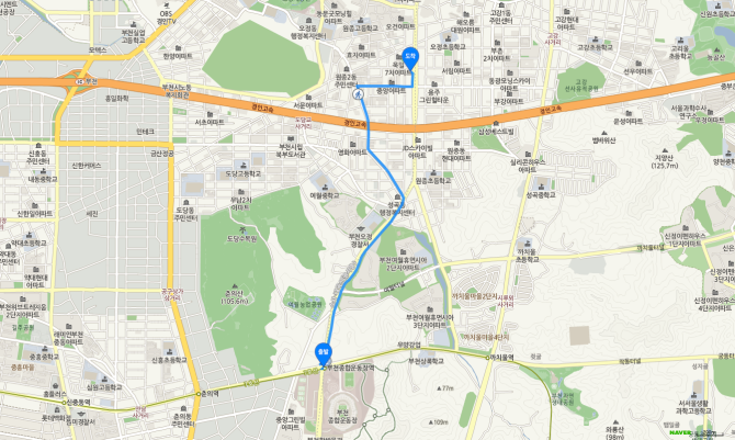 부천종합운동장역 하차 후 95번 버스 오시는 길