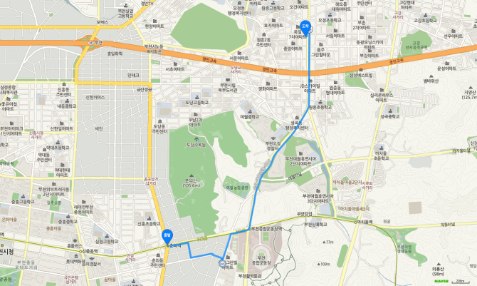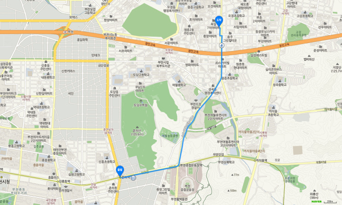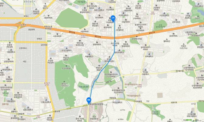 춘의역 하차 후 75번 버스 오시는 길