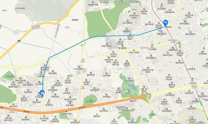 화곡역 하차 후 70번 버스 오시는 길