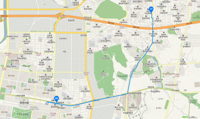소사역 하차 후 75번 버스 오시는 길