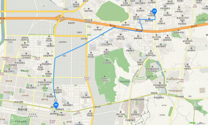 부천 북부역 하차 후 75번 버스 오시는 길