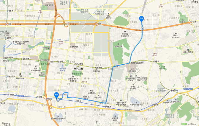 부천 북부역 하차 후 50번 버스 오시는 길